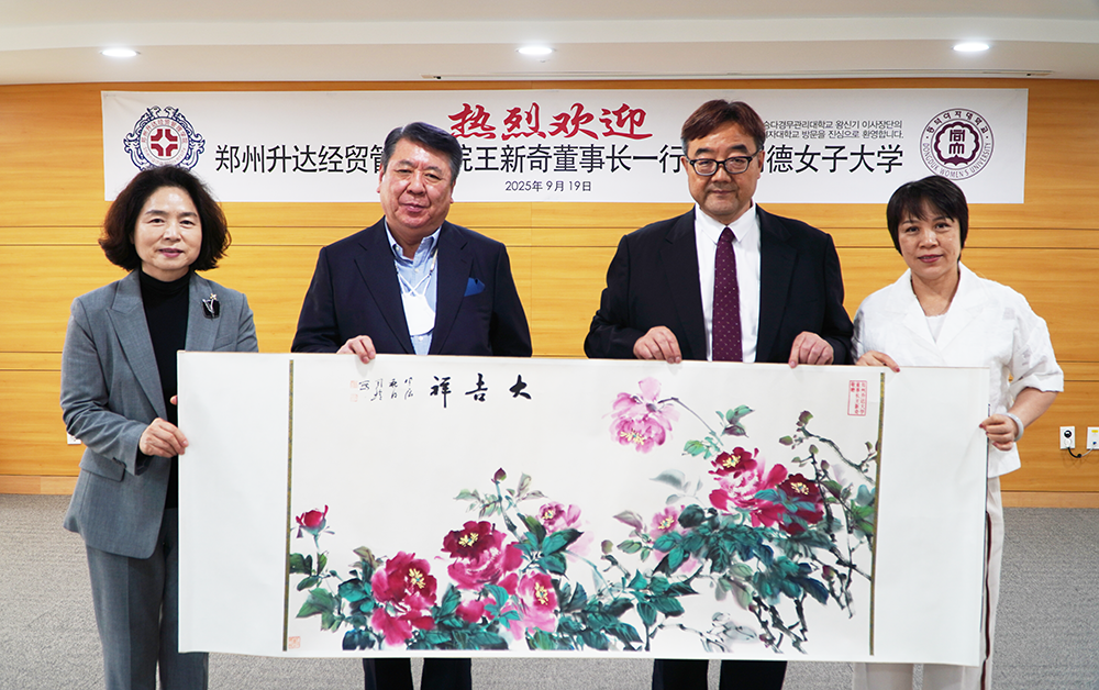 오늘(9월 19일) 왕신기 중국 정저우성다경무관리대학교 이사장을 비롯한 대표단이 우리 학교를 방문해 조원영 동덕학원 이사장, 김명애 총장과 학생 교류 방안 등을 논의했다.