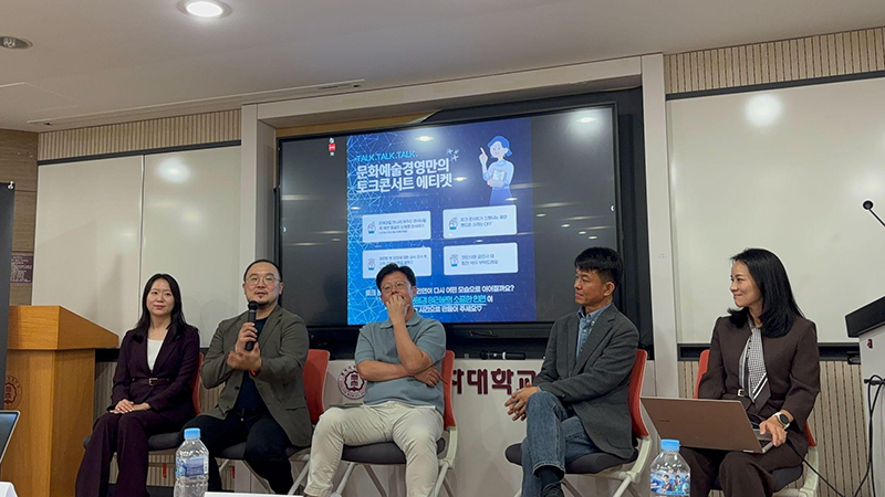 고려대 엔터테인먼트 경영학부 김정환 교수는 “이제는 상품이 아닌 경험과 이야기를 서비스하는 시대”라고 말하며, 엔터테인먼트 산업의 플랫폼화와 기술 융합을 설명했다. 또한 커뮤니케이션 역량, 기술 활용 능력, 비즈니스 감각을 미래 문화예술경영인의 핵심 역량으로 제시하며 “사람을 이해하고 산업을 읽는 기획자야말로 문화예술산업의 중심”이라고 설명했다.