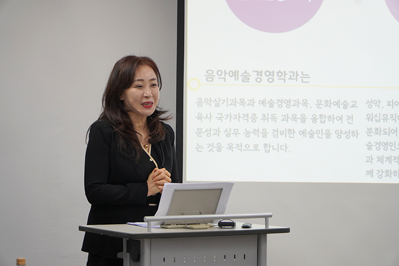 음악예술경영학과는 음악전공과 예술경영 실무, 문화예술교육사 자격증 등 다양한 성취가 가능한 점을 내세웠다. 김은정 음악예술경영학과 교수는 "과목 융합을 통해 전문성과 실무 능력을 겸비한 예술인을 양성하는 것이 목적"이라고 전했다. 다양한 과목을 융합해 다루는만큼 음악·공연 업계, 공공문화정책 분야 등에 폭넓은 진출이 가능하다.