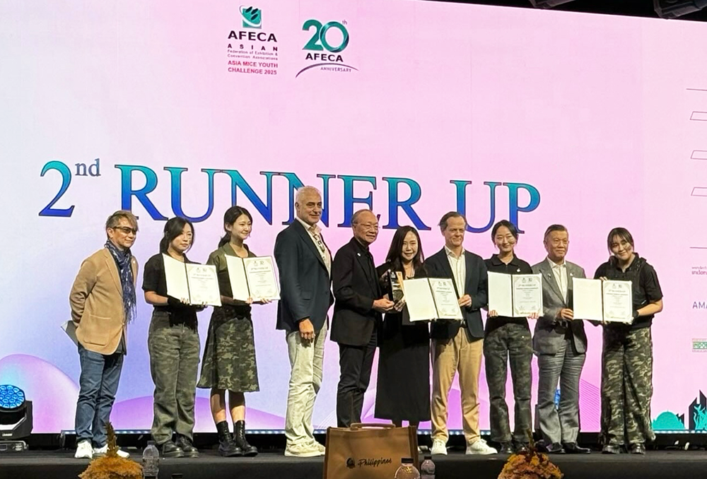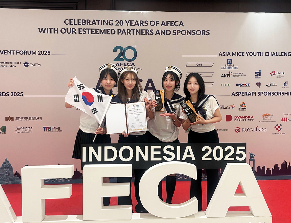 AFECA는 아시아 150여 개 기관이 회원으로 참여하는 MICE 산업 국제연맹이다. 이번 대회의 주제는 ‘MICE 산업의 창의적 발전을 위한 신규 이벤트 기획’으로, 인도네시아, 필리핀, 싱가포르 등 10개국 21개 팀이 참여했다. 동덕여대 글로벌MICE융합전공은 2년 연속 AFECA 아시아 MICE 유스 챌린지 본선 진출 및 수상 성과를 기록하며, 한국 대학 MICE 교육의 경쟁력을 입증했다는 평가다.