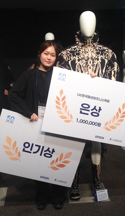 우리 대학 패션디자인전공 이정현 학생(지도교수 권성하)이 (주)한국엡손이 주최한 ‘내일을 위한 디지털 텍스타일 프린팅 공모전’에서 은상을 수상하는 성과를 거두었다.