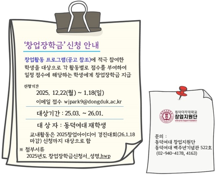 ○ 문 의 처 : 동덕여대 창업지원단(백주년 기념관 522호)