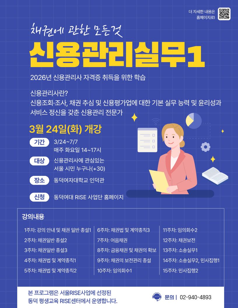 - [RISE사업단][평생교육 RISE센터] 신용관리사 자격증반 1, 2 강의 안내