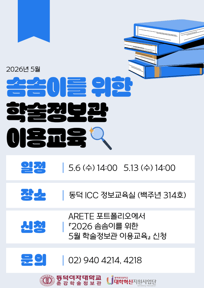 - [춘강학술정보관]2026 솜솜이를 위한 학술정보관 이용교육(5월)