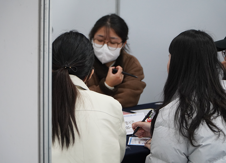 특히 기업체 인사·직무 담당자들로부터 직접 상담을 받을 수 있는 진로직무 박람회엔 학생들의 발길이 끊이지 않았다. △공기업 △엔터테인먼트 △방송·미디어 △외국계 △금융 △광고·홍보 △헬스케어 △화장품·뷰티 △항공 △디자인 △SW개발·AI 등 폭넓은 분야의 기업부스가 마련된 결과다. 관심분야에 따라 여러 부스에서 상담을 받는 학생도 상당수였다.