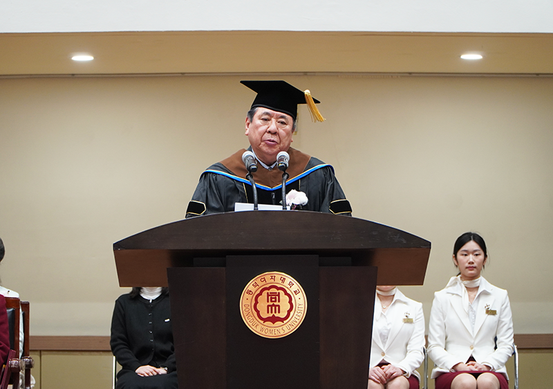 이어서 조원영 이사장은 "여러분이 졸업을 맞이하게 될 2029년, 동덕여대는 남녀공학이라는 새로운 체제로 나아가게 된다"며 "뜻깊은 변화의 출발선에 여러분이 서 있고, 전통을 발전적으로 계승하여 더 넓은 세상으로 나아가는 주인공이 되어주길 바란다"고 축사를 전했다.