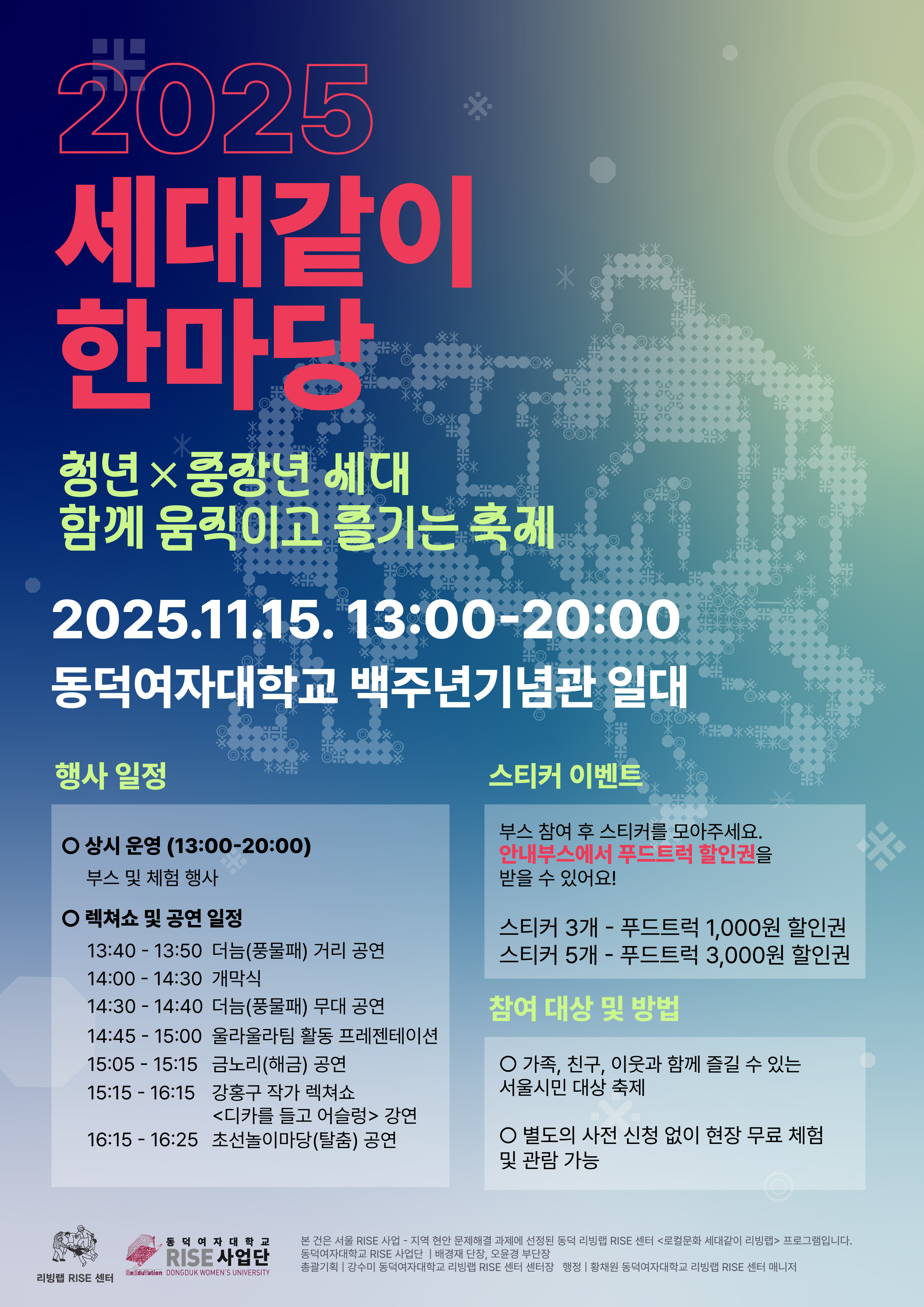 - [RISE사업단][리빙랩 RISE센터] 11/15 세대같이 한마당 사회자 모집